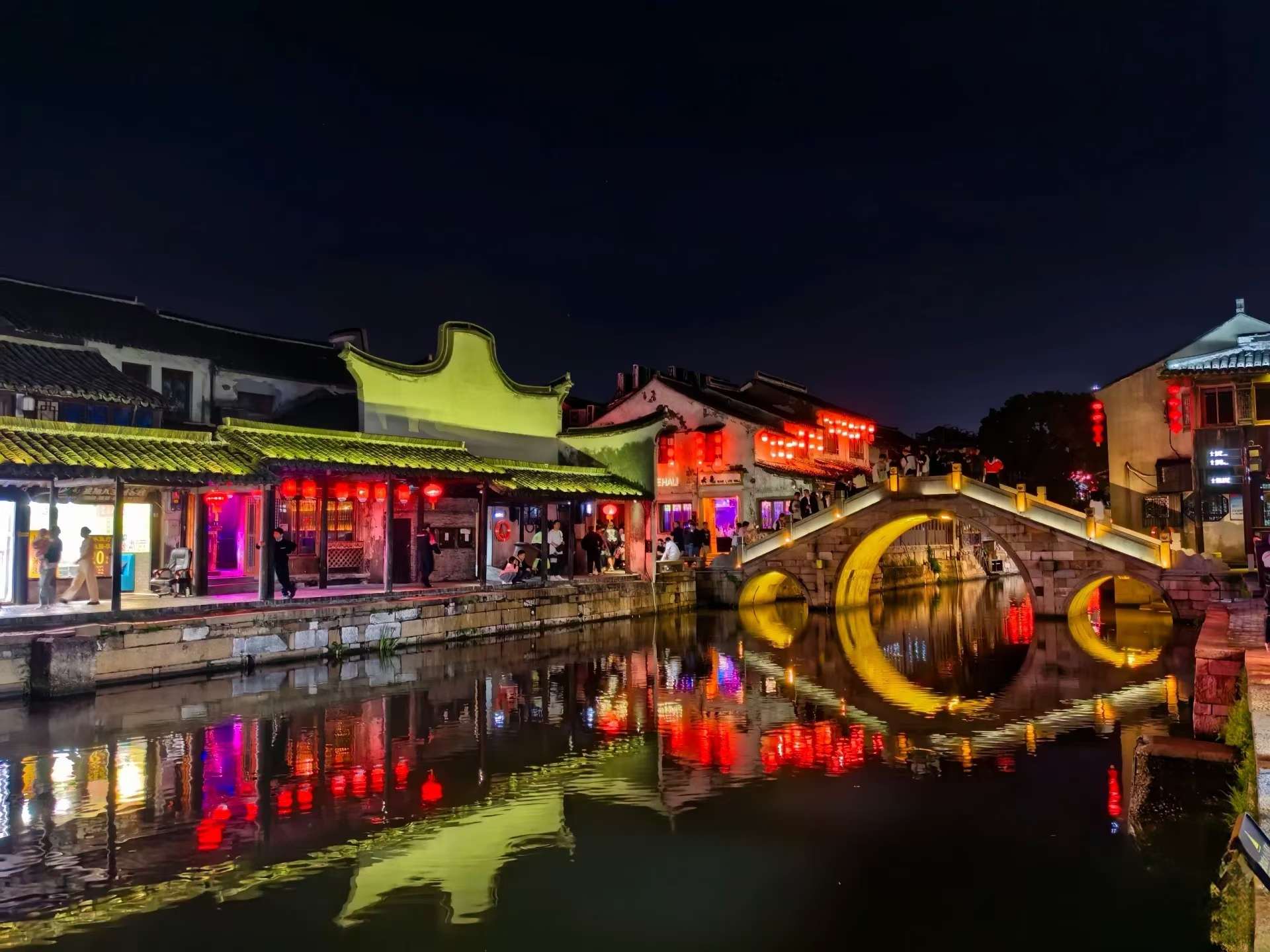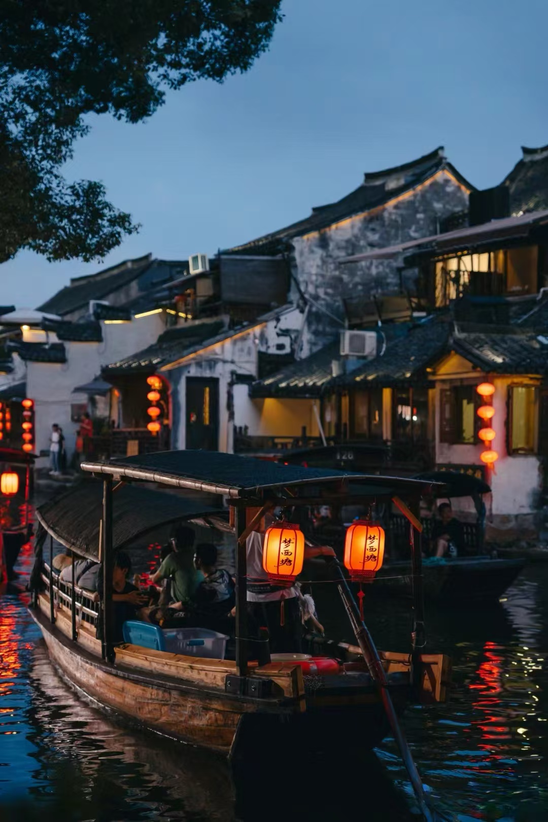 19:00左右,夜幕降临,华灯初上,一盏盏红灯笼亮起来,一艘艘小船儿摇起来,一群群游人们欢起来,或是选择步入一家具有西塘特色的小店独处一下。无论如何,定格住此刻美好的画面吧!