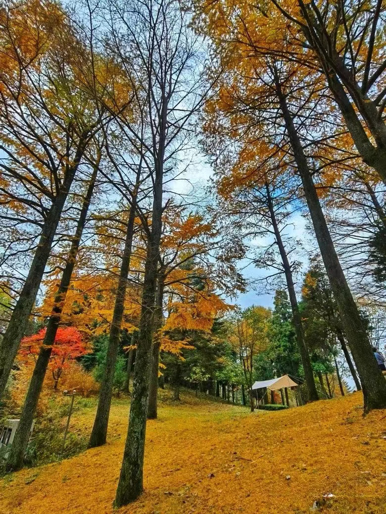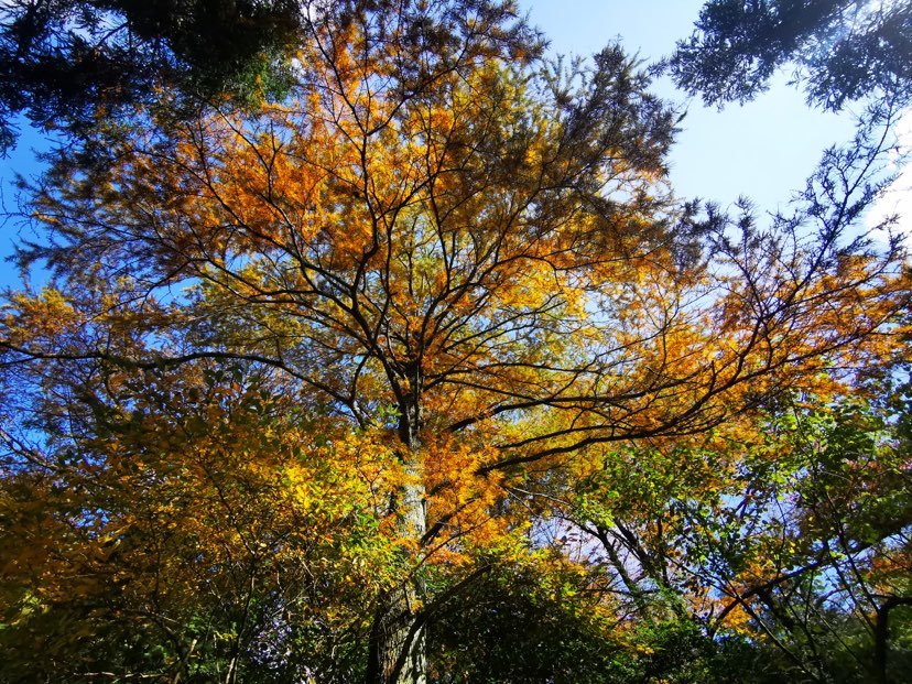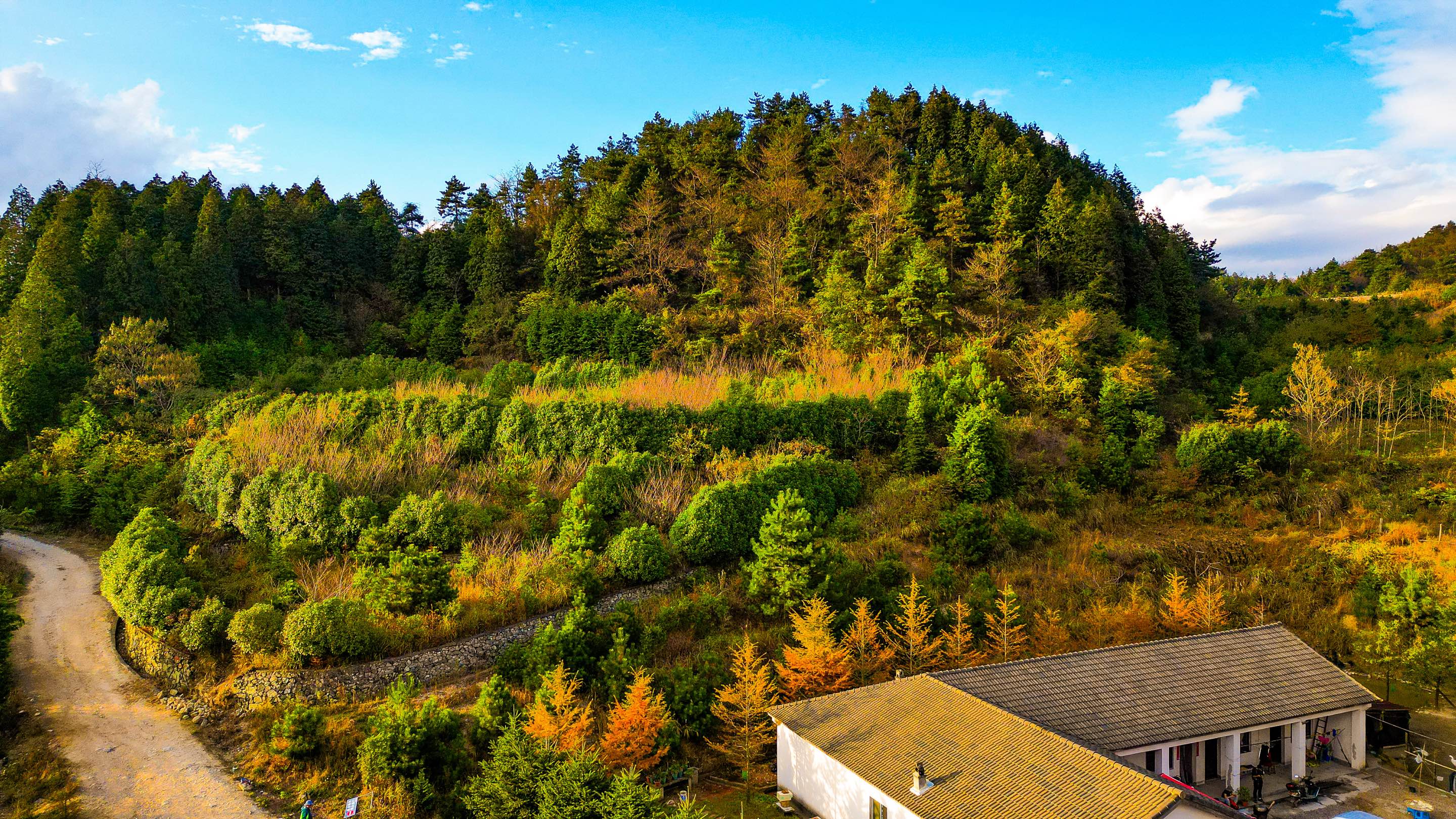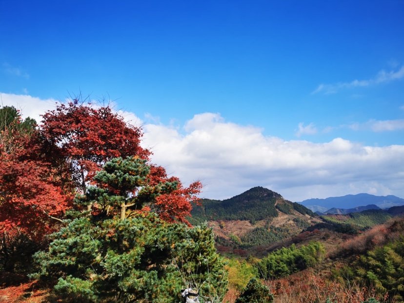这里的秋天注定是一副五彩斑斓的画面,像是打翻的颜料盒。百年的古银杏树群,每到秋天便是金黄的世界,银杏树成片;四季都未曾“换过衣服”的红枫,红的有些过分;茅镬古村,柿子树枝头挂满了火红的柿子,一派丰收的多彩画;远处,古村的马头墙和这五颜六色,构成一幅多彩多姿的画面。