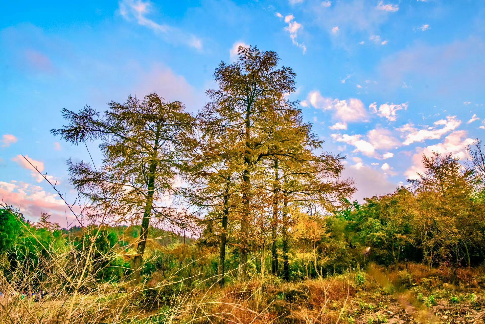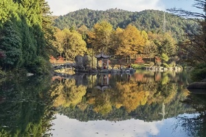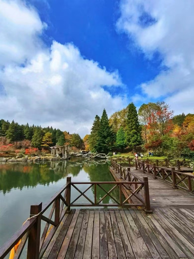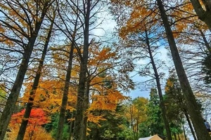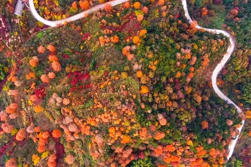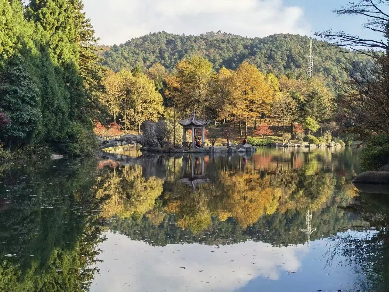 这里的秋天注定是一副五彩斑斓的画面,像是打翻的颜料盒。百年的古银杏树群,每到秋天便是金黄的世界,银杏树成片;四季都未曾“换过衣服”的红枫,红的有些过分;茅镬古村,柿子树枝头挂满了火红的柿子,一派丰收的多彩画;远处,古村的马头墙和这五颜六色,构成一幅多彩多姿的画面。