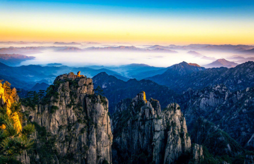 黄山是世界文化与自然遗产、世界地质公园、世界生物圈保护区,是国家级风景名胜区、全国文明风景旅游区、国家5A级旅游景区,与长江、长城、黄河同为中华壮丽山河和灿烂文化的杰出代表,被世人誉为“人间仙境”、“天下第一奇山”,素以奇松、怪石、云海、温泉、冬雪“五绝”著称于世。境内群峰竞秀,怪石林立,有千米以上高峰88座,“莲花”、“光明顶”、“天都”三大主峰,海拔均逾1800米。明代大旅行家徐霞客曾两次登临黄山,赞叹道:“薄海内外无如徽之黄山,登黄山天下无山,观止矣!”后人据此概括为“五岳归来不看山,黄山归来不看岳”。