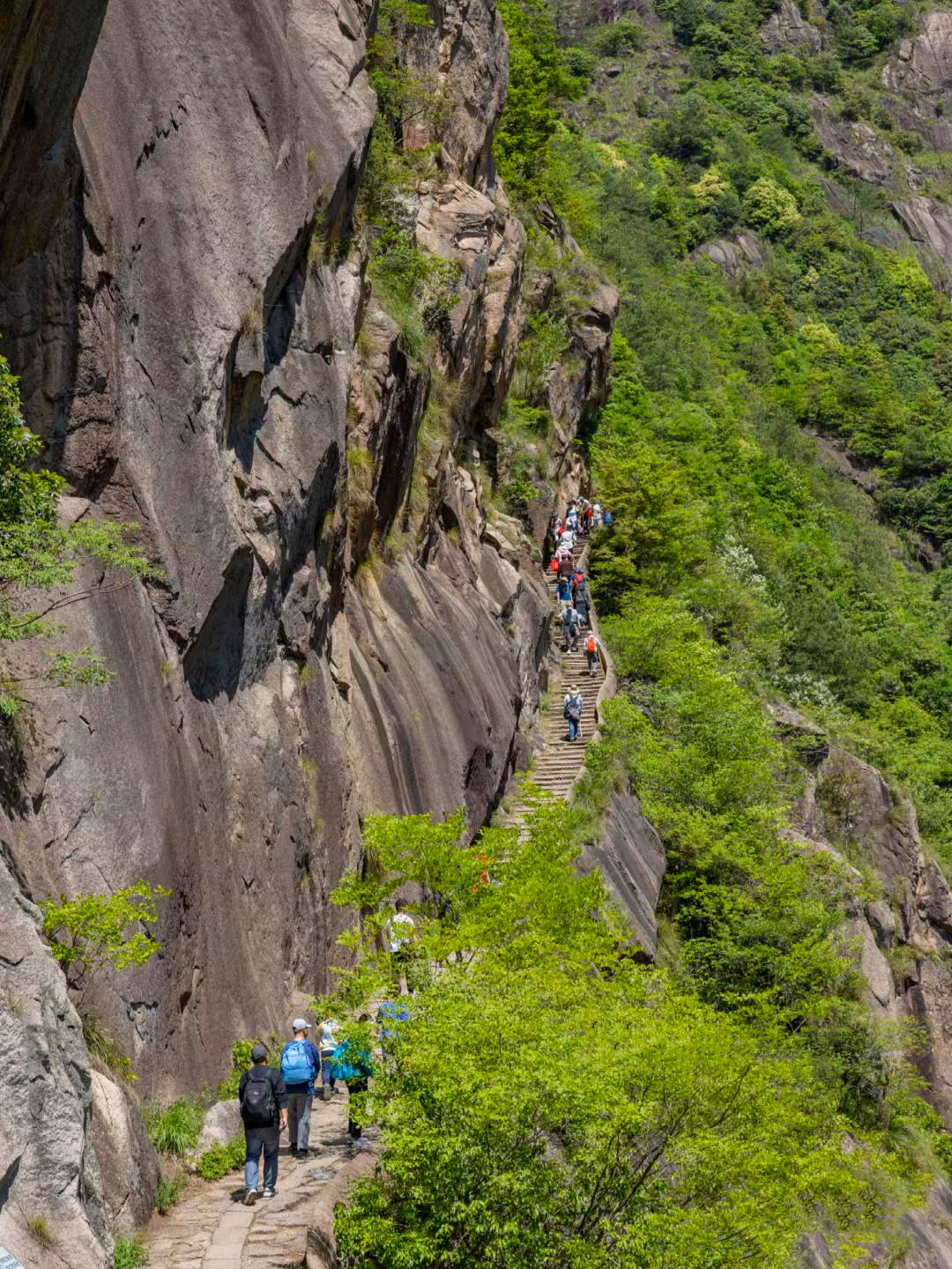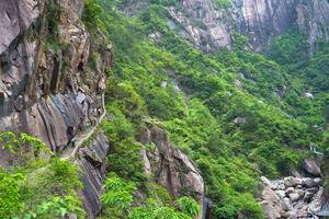 11:00左右,到达【江南第一关】,这里是徽杭古道的精华地段,万丈悬崖上凿出的石板栈道,气势恢宏。