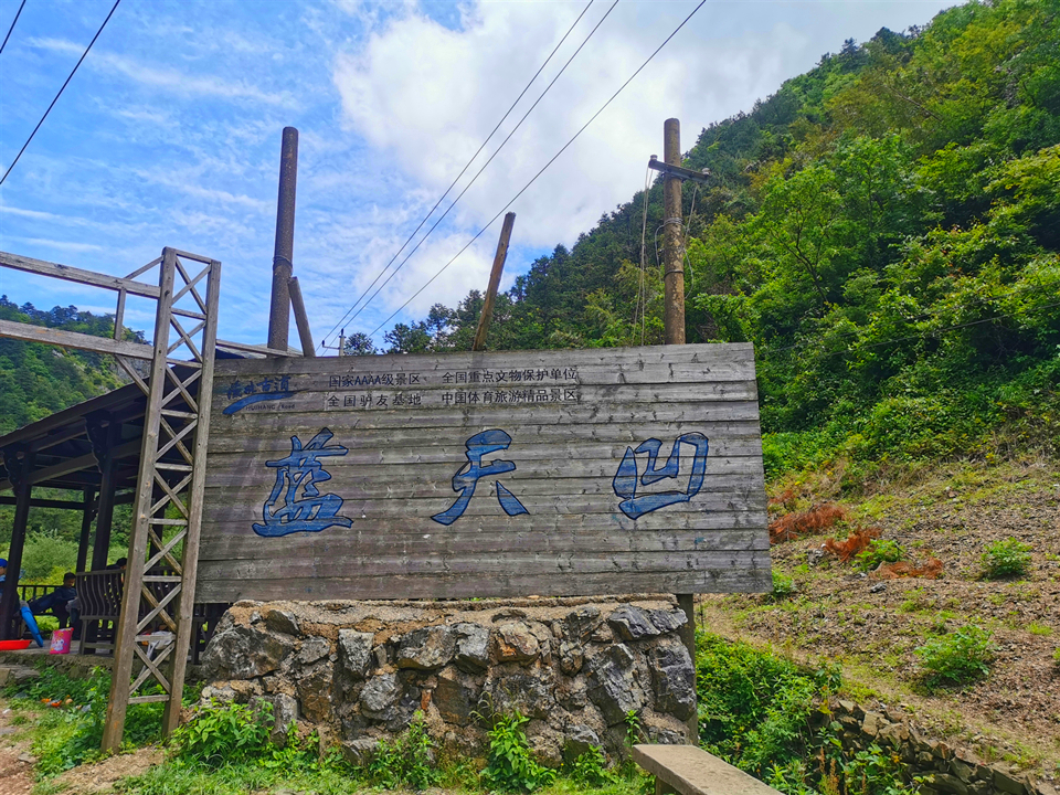 15:00 左右,到达海拔1050米的【蓝天凹】。蓝天凹是徽杭古道的至高点,伫立凹口,极目四眺,皖浙山水尽收眼底,周围群山皆拜倒于脚下,更远处丛峦叠嶂,风起云涌,古道绵延,空山静谷,慑人心魄。而后继续前往我们的宿营地。