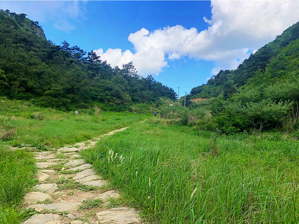 7:20左右,集合继续出发,一路都是下坡,沿着古道峡谷路而下。
