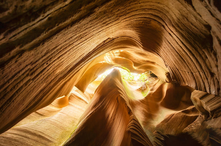 这里是天然的摄影地,峡壁凹凸有致,曼妙身姿形如波浪,线条优美流畅,随着阳光变化,峡壁上呈现出橙色、红色等色彩,再加上岩壁上绿色的苔藓,妙不可言。抬头看去,一道圣洁的光洒入心底,景色壮观且稀有,大气中带着婉约。