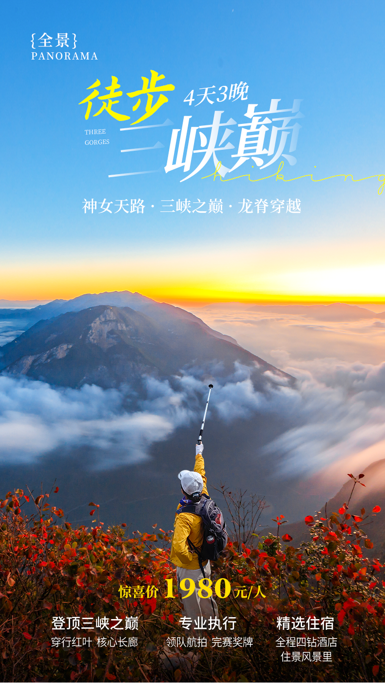 巫山-白帝城-危石鸟道-诗意栈道-(徒步12公里,海拔上升1100米)三峡之巅;