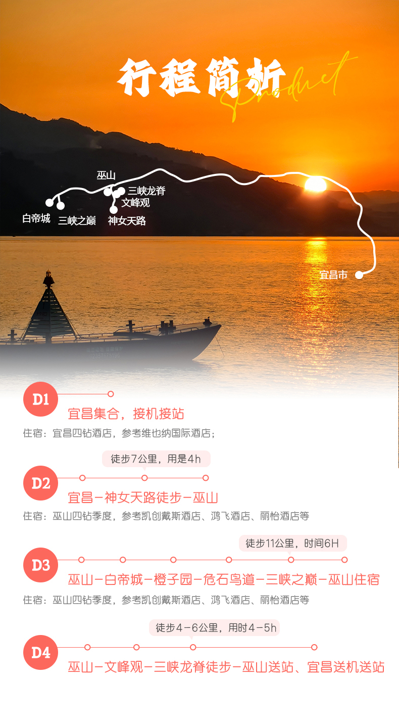 2. 由于此产品游览区域属于巫山、奉节,经济发展缓慢,物资匮乏,旅游资源条件有限,无法与一二线城市旅游资源比较,如遇相关问题敬请谅解