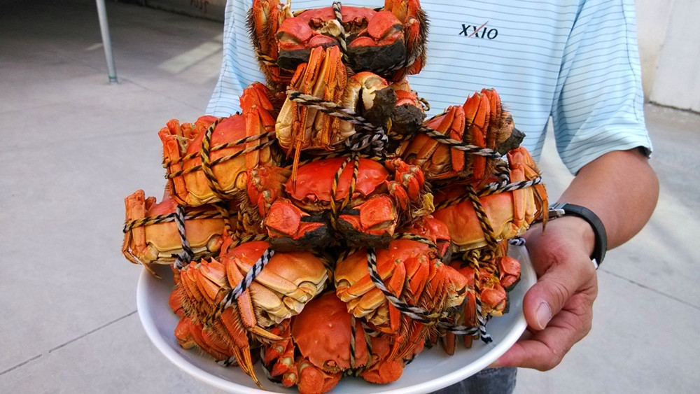 阳澄湖大闸蟹又名金爪蟹。产于苏州阳澄湖。蟹身不沾泥,俗称清水大闸蟹,体大膘肥,青壳白肚,金爪黄毛,肉质膏腻。农历9月的雌蟹、10月的雄蟹,饱满蟹黄。煮熟凝结,雌者成金黄色,雄者如白玉状,滋味鲜美。