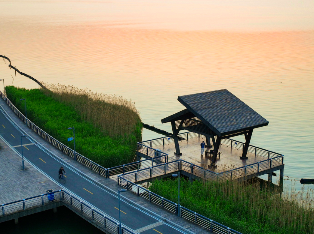 阳澄湖半岛旅游度假区,位于苏州工业园区北部、阳澄湖南岸,是休闲度假旅游的胜地。置身阳澄湖半岛,不仅能享受自然亲水的精致景观,感知丰富深厚的多元文化,更能沉浸在宁静纯美的生态绿林演绎逐水而居幸福生活。阳澄湖半岛沿湖修建着步行道,路边树木郁郁葱葱,湖风吹过,路边的柳树随风飘扬,让你沉浸在这美丽的意境中,美不胜收。最喜欢这一段绿荫长廊,夏风习习,凉意很浓,在这里拍拍照,每一张都很美