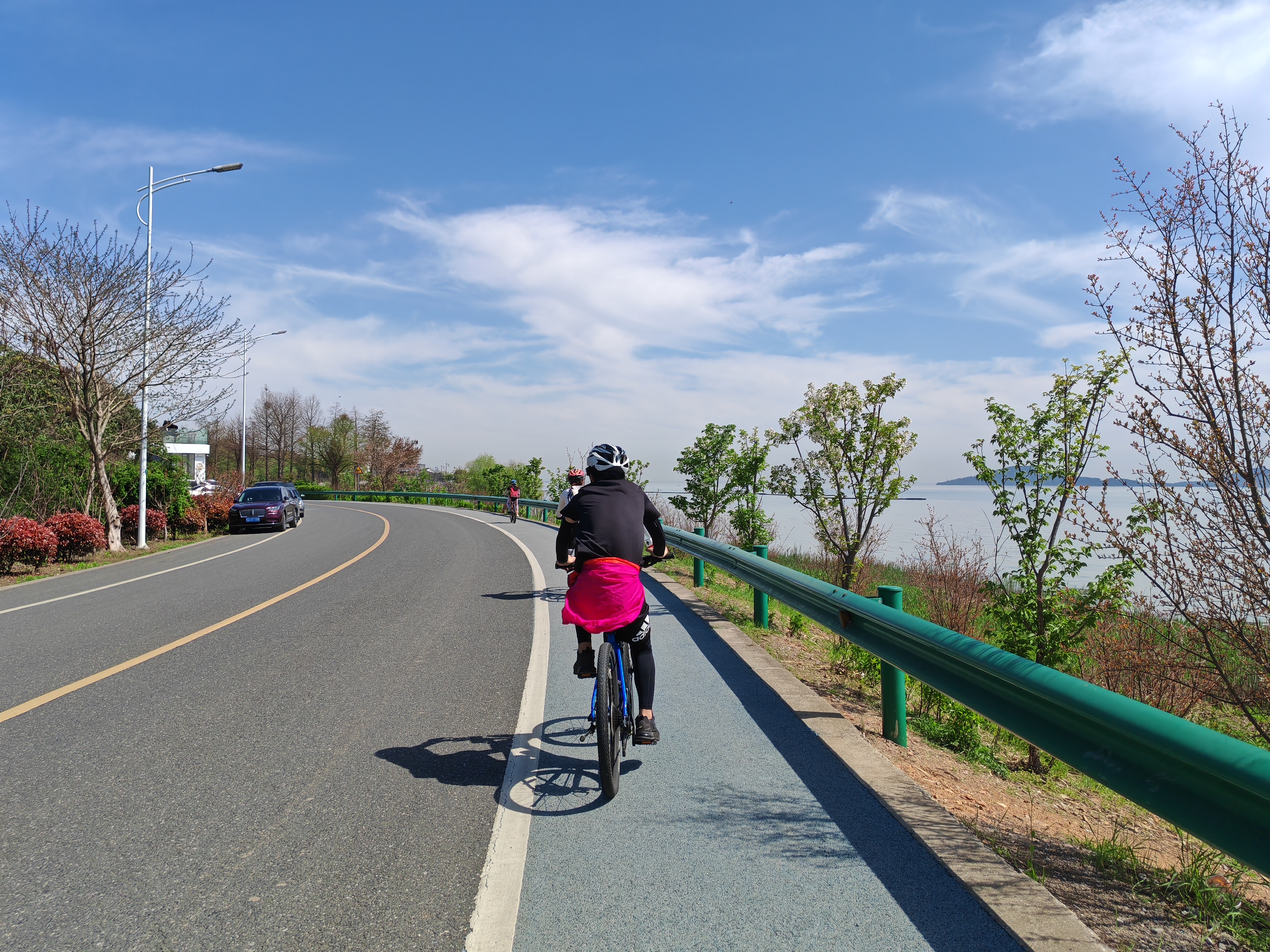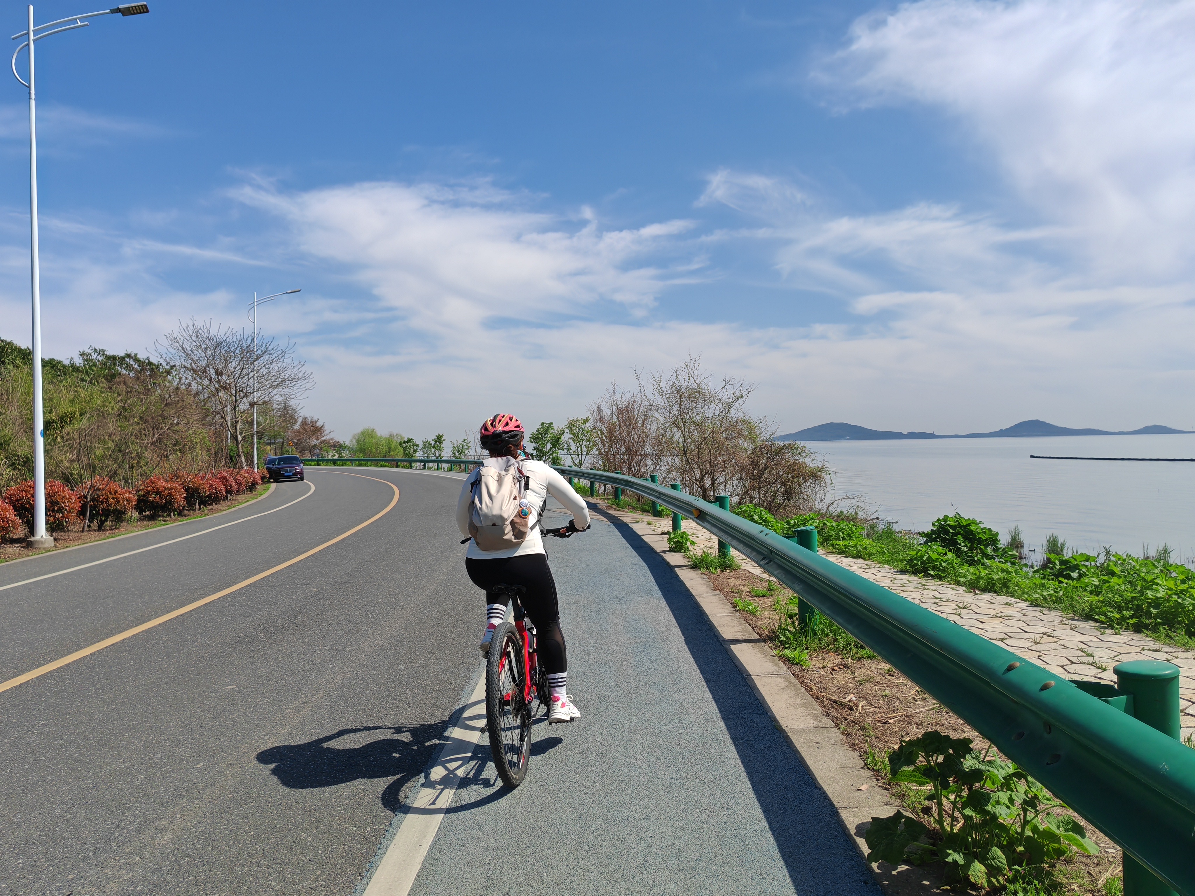 畅骑一段赛道级的环湖公路,视野非常开阔,到风景美的一段,我们停下来,铺一张毯子,望着湖光山色,把美食一起分享,来一顿湖边野餐~