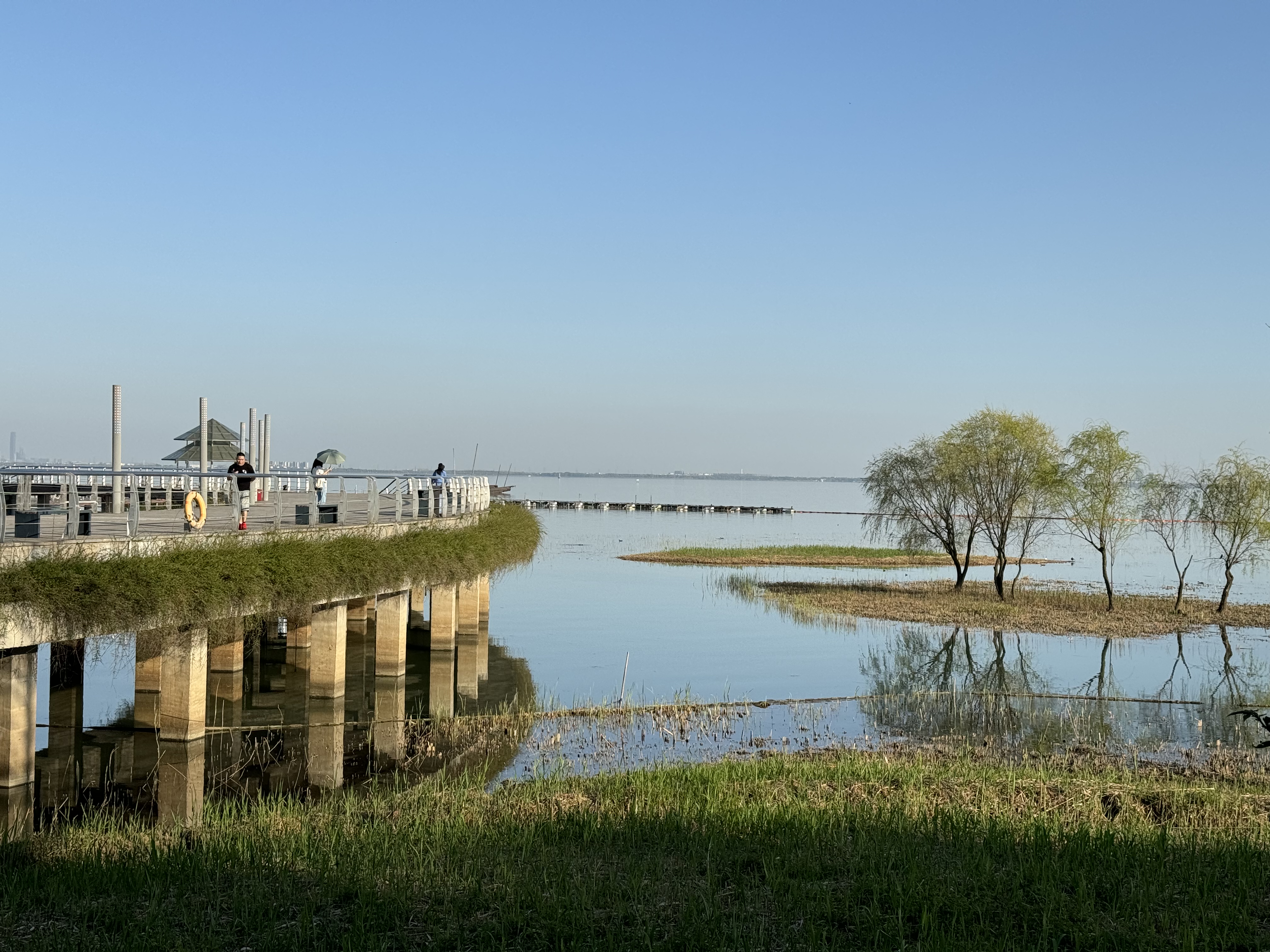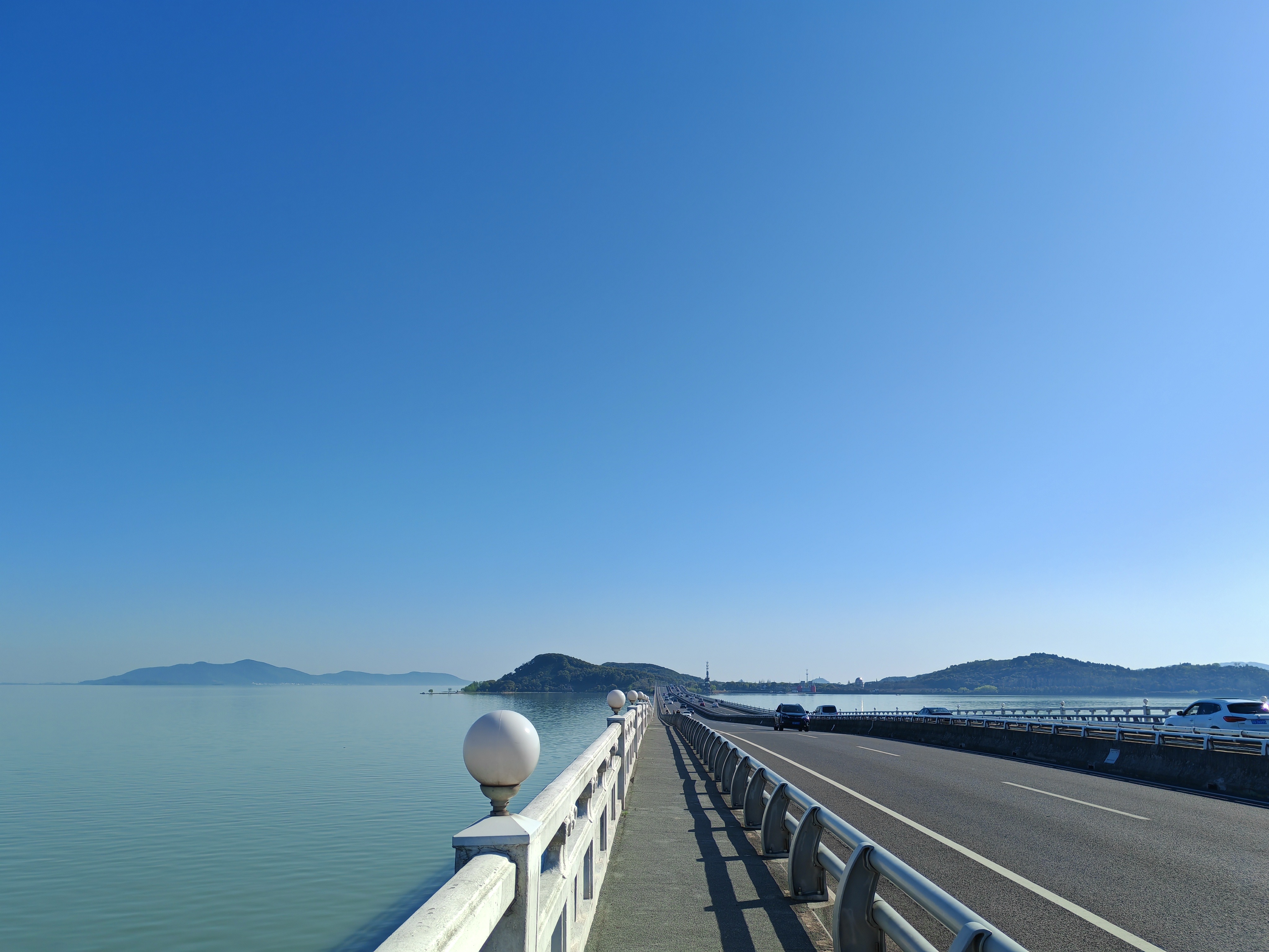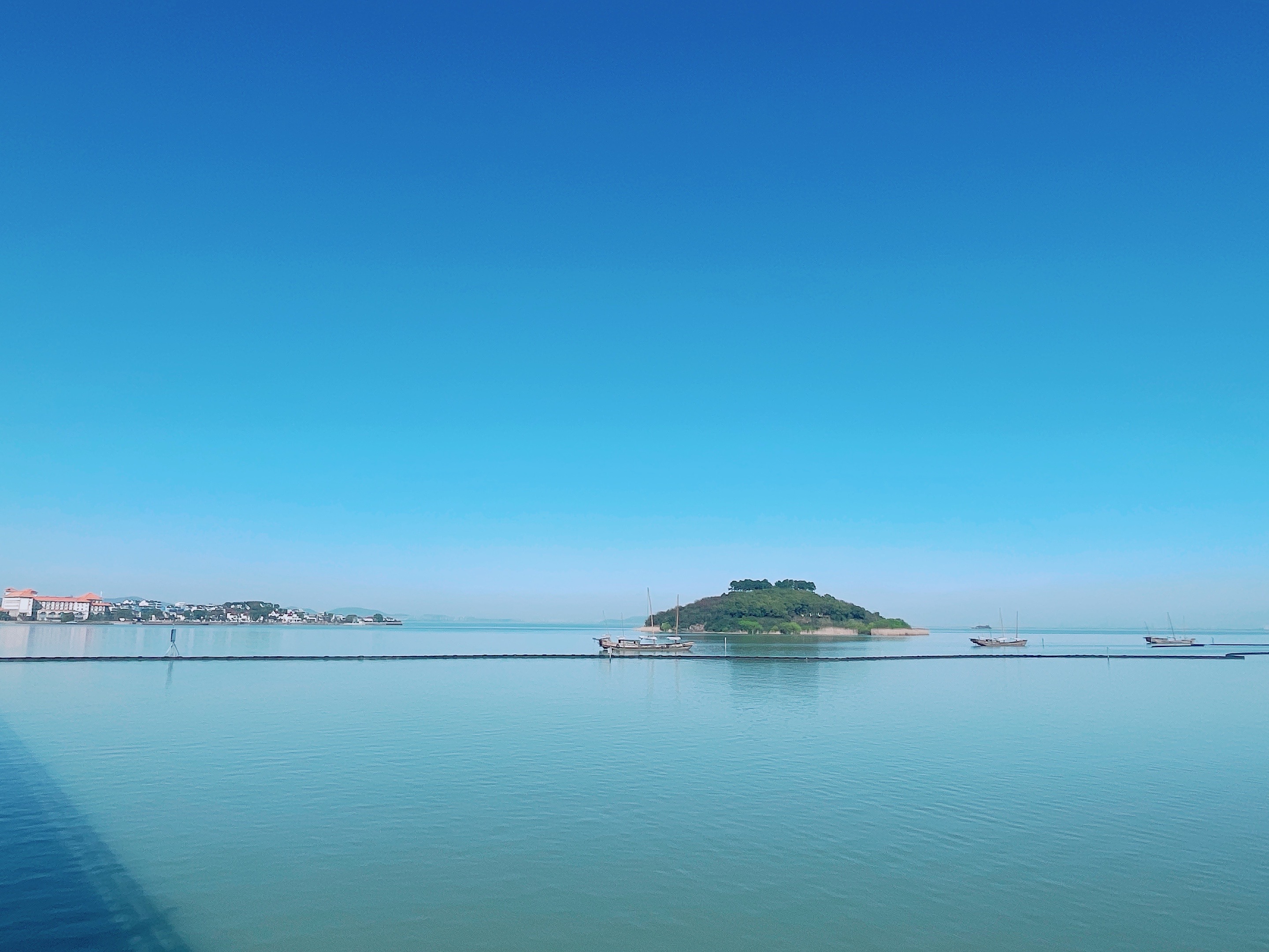 下午骑到【明月湾古村】,《何以笙箫默》曾在此取景,我们在此稍适休息,在网红码头静静欣赏烟波浩渺的太湖,听一听旁边的蝉鸣鸟叫声。我们骑过古村和果林,在【太湖大桥】上等一场令人心醉的日落,完成我们的环岛骑行