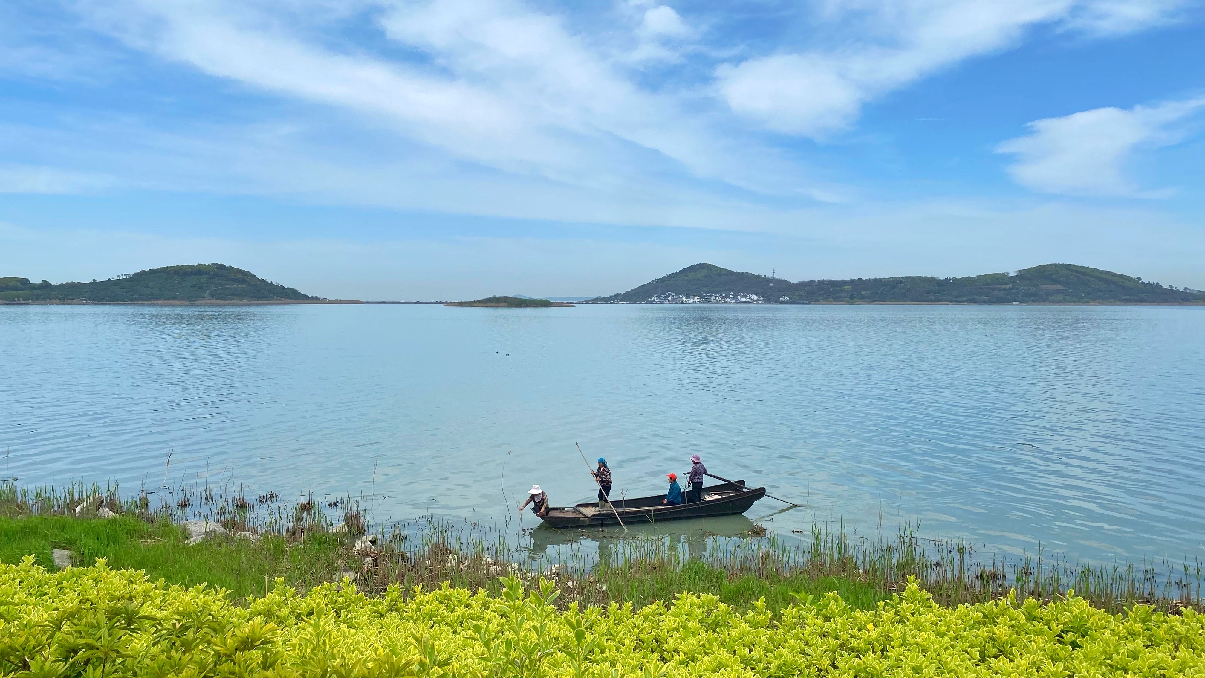 午餐后,领队准备了各种好玩的游戏互动,在湖边休息片刻继续我们的环岛之旅~一路海棠绽放,碧螺春茶田郁郁葱葱,柳风拂面,真是好不惬意!