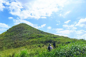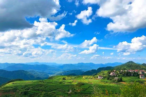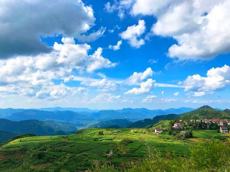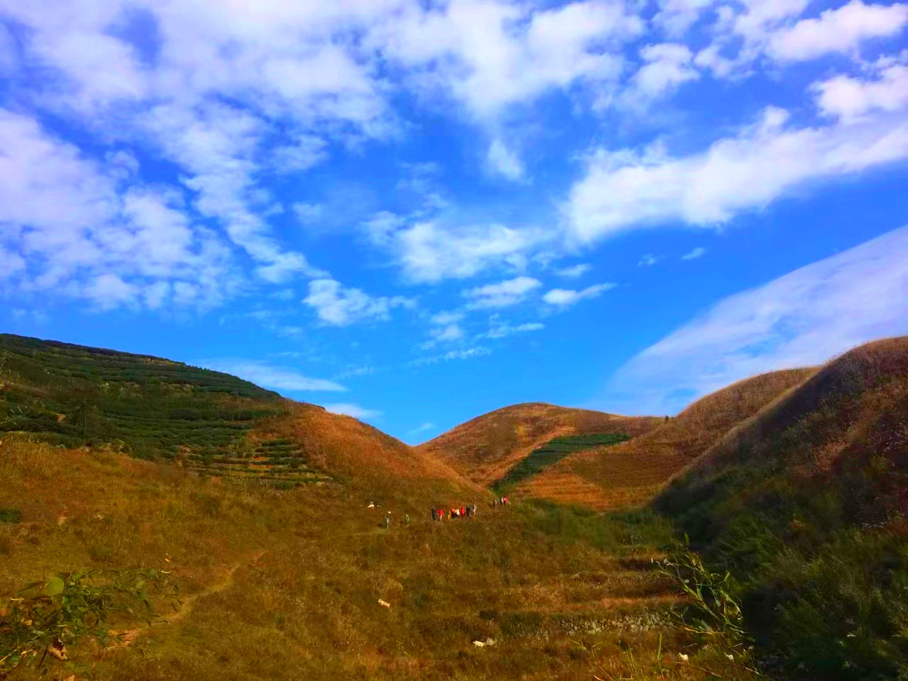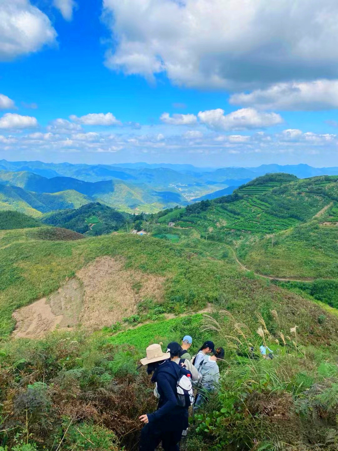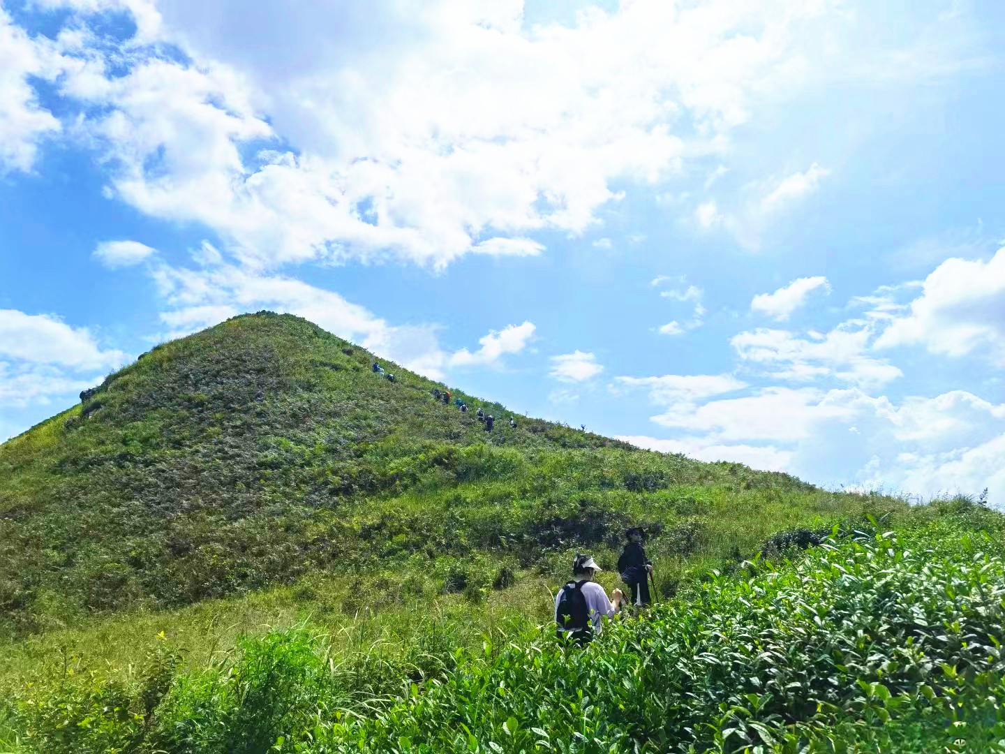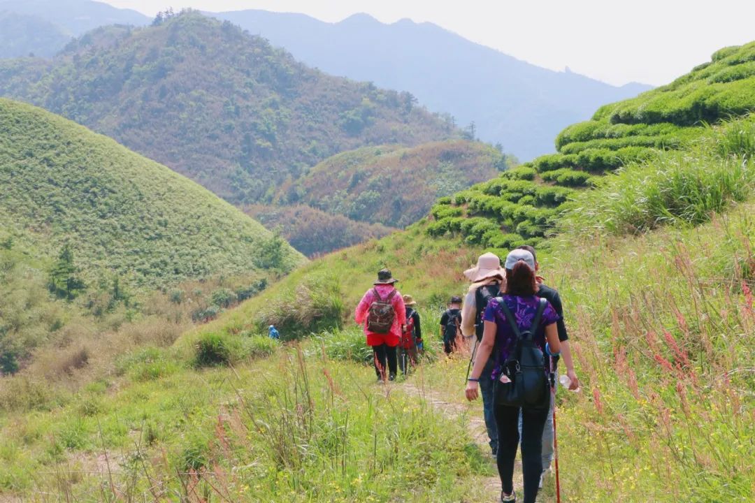 13:00餐后我们继续出发,稍后我们抵达今天的精华段大尖山草场,环形的茶田围绕着中心水库,水库边大尖山孤峰突起,山上无树,草甸铺满整个山头,登高俯瞰,峰峦连绵,茶山成片,山岙间两座水库宛如两颗明珠,还有村庄零星点缀,自然馈赠的景色美不胜收。