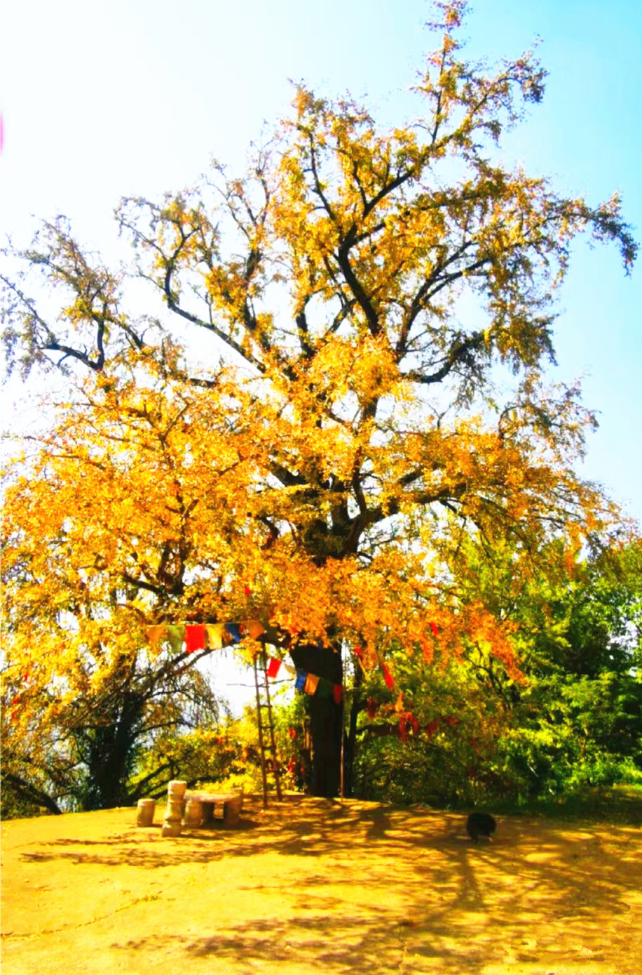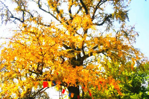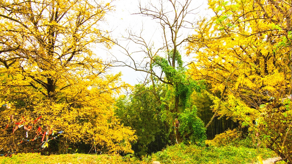 饭后开始延台阶攀登九峰山,登上山顶后,可以见到一棵千年古银杏树,相传是孙权母亲手植下的。之后会路过一片铺满落叶的山脊线,这里坡度平缓,徒步感觉煞是舒爽。