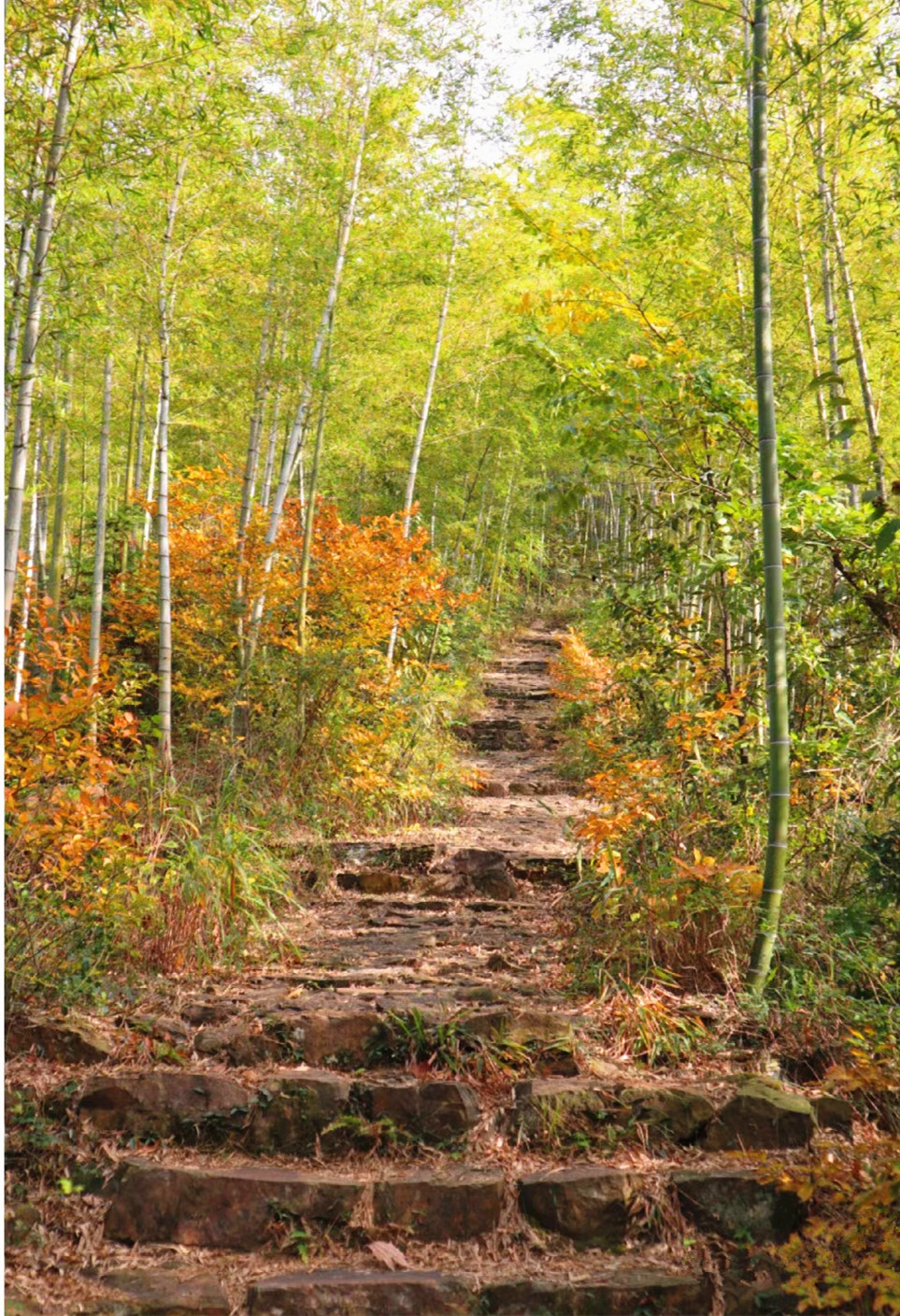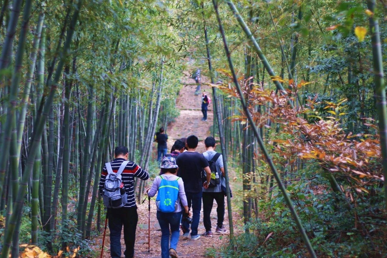 11:00左右到达起点,整理行装,简单热身后,开始进入【三洲古道】,途径新四军后方医院遗址,这里的银杏树很美,可拍照打卡。(上山的路又陡又窄,大家可扶竹前行)
