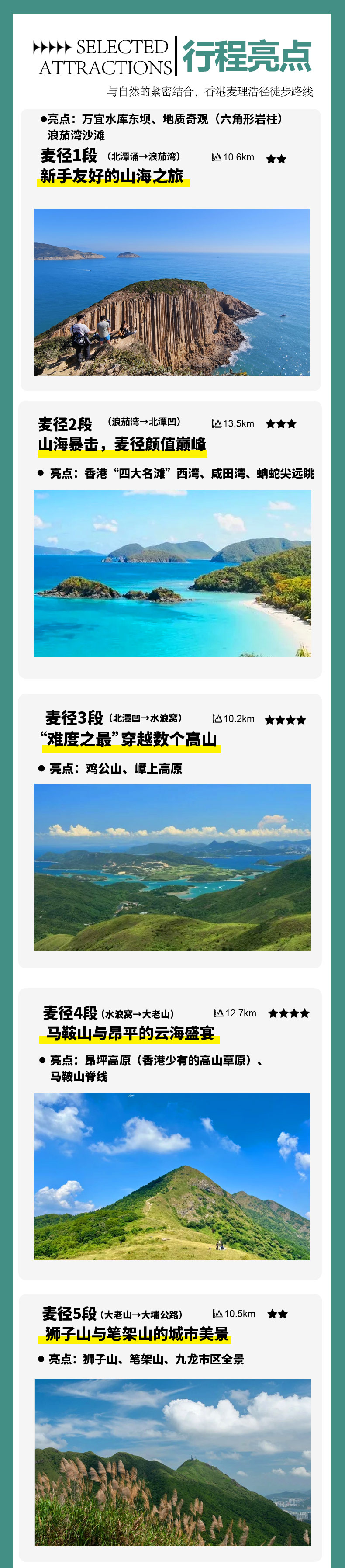 温馨提示:第一天是整个麦径行程风景最好的一段,尽量给大家留多点时间拍照,所以行程安排轻松一些。
