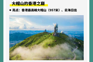麦理浩径第八段:该段难度也不小,一开始就是爬升,一直到最高点957米的大帽山雷达站,大帽山是香港最高峰,云海日出不输武功山。山顶风大,但视野无敌,终点荃锦公路交通便利。