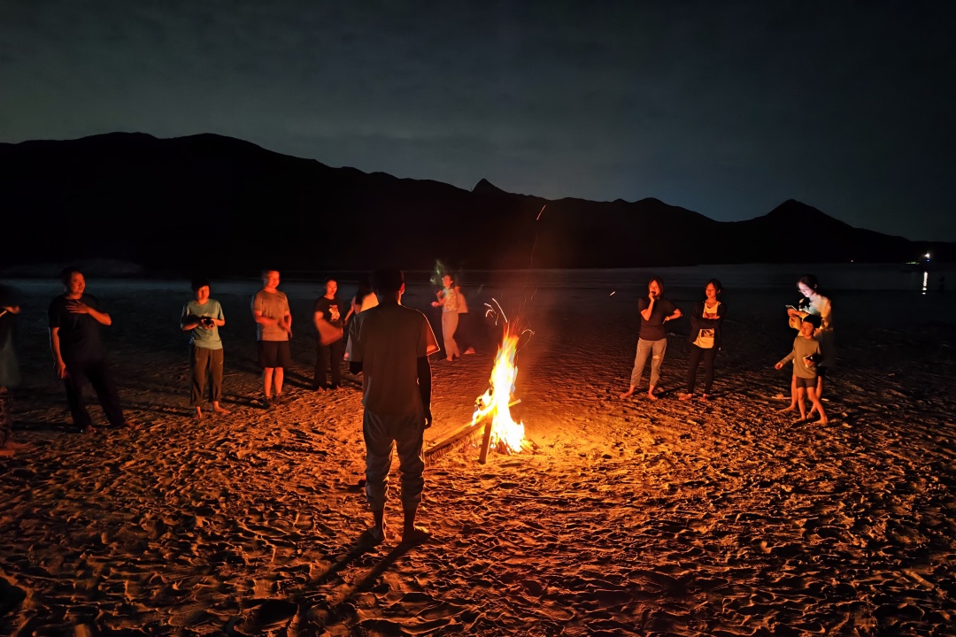 晚上如果想篝火的队友,由领队统筹指引队友自行收集枯枝自行篝火,也可以到士多KTV唱歌喝酒,在沙滩上闭上眼睛,听海浪声音,数漫天星星,等海边日出。(如果在沙滩营地露营的小伙伴,晚上可能会有牛牛来跟你做邻居,请勿害怕)