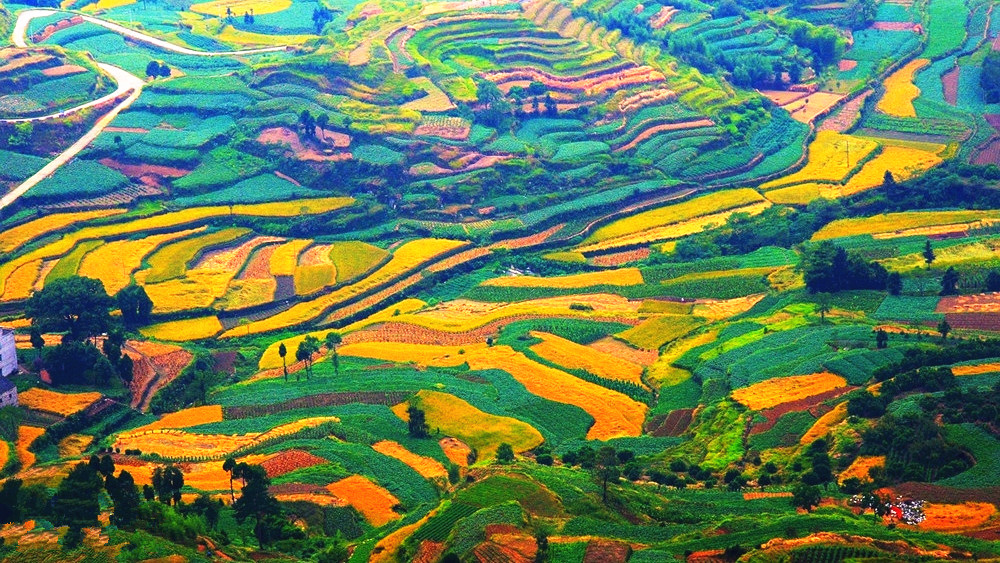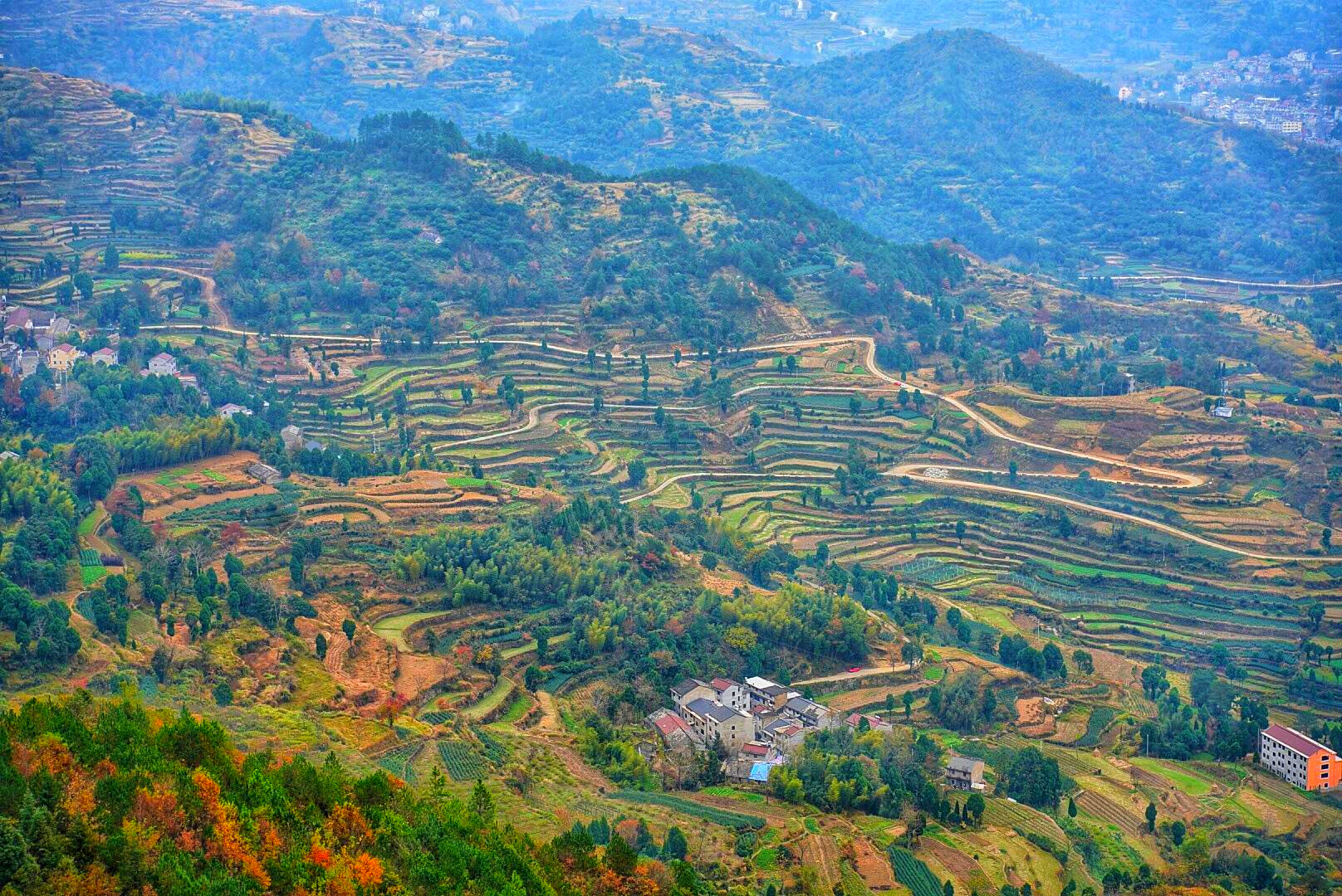穿过蓝湖和几座郁郁葱葱的山坡,前面豁然开朗。原来我们身处在高高的山顶,这里也是天台县和临海市的分界处,前方的山脚下,是另一番令人叫绝的风景:层层叠叠的梯田蔓延在山坡上,十分壮观。这里就是有名的黄坦梯田和黄坦盆地。其规模甚至能与广西桂林的龙脊梯田相媲美。沿着山路一路下山,然后走一个环线回到徒步起点。