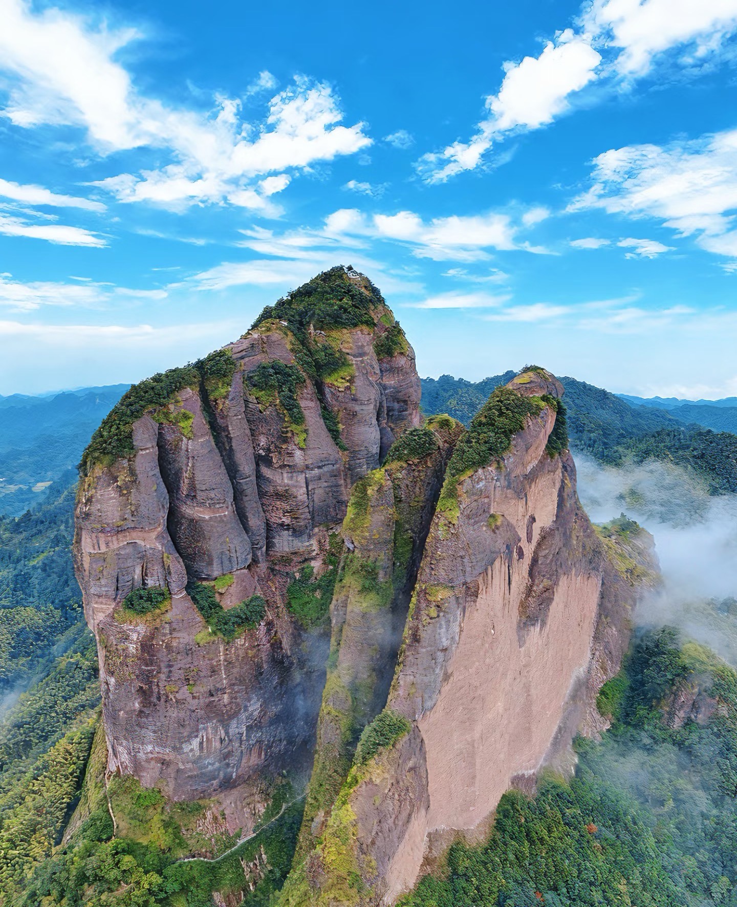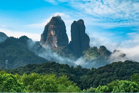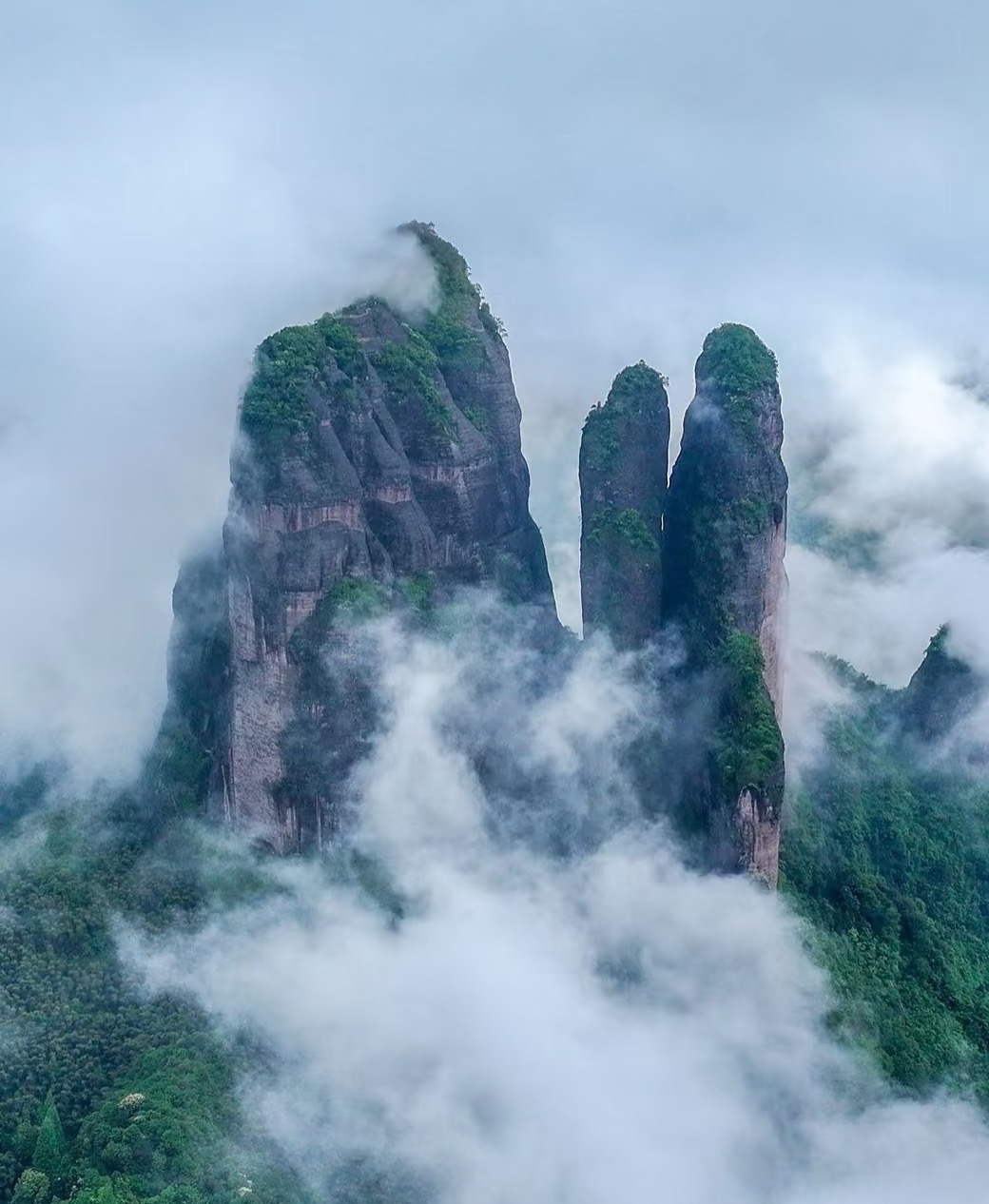 江郎山位于浙江省衢州市江山市石门镇境内。以雄伟壮观的“三爿石”而名闻天下,峰高壁峭,险峻异常,且形如“川”字,被徐霞客大为称赞,称赞其“奇、险、神