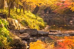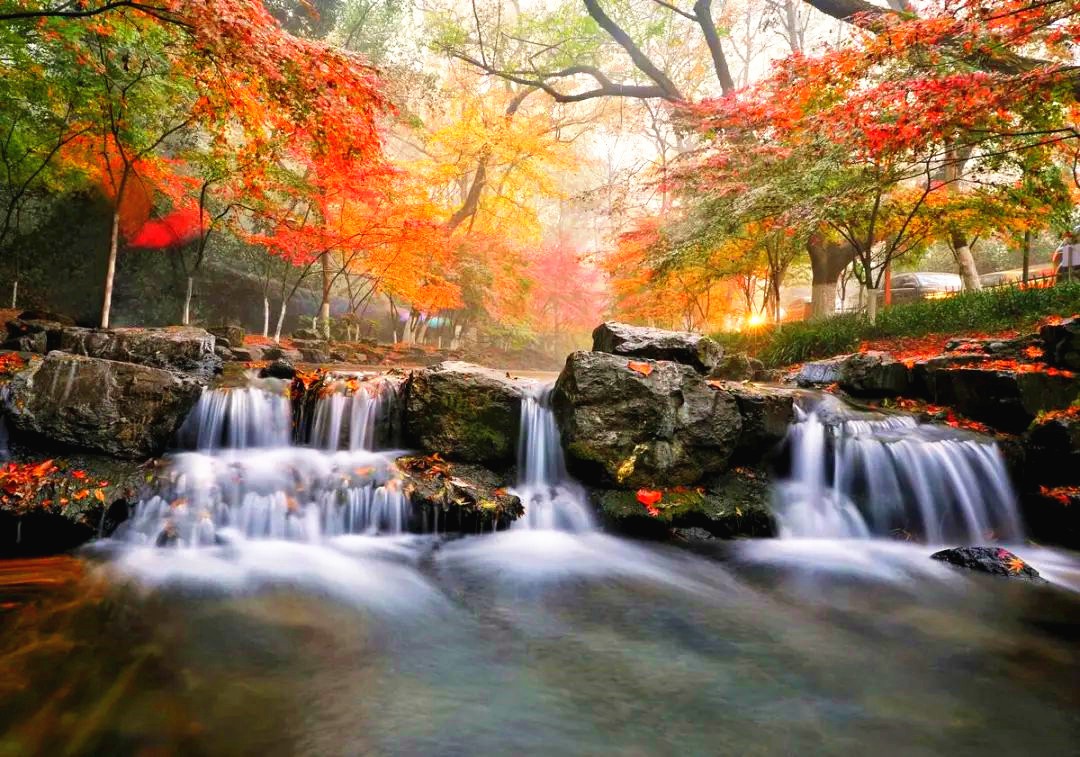 九溪十八涧:位于杭州西湖景区内,景色天然,少有匠气,"溪水因山而曲折",忽左忽右,其中6处溪流漫过山径,上置石步,游人可涉水溪中,也可自石上鹤步而过,各有意趣。清俞曲园有诗:"重重叠叠山,曲曲环环路,叮叮咚咚泉,高高下下树。"身历其境,尘襟为之一洗,更有一种人在画中游的感觉