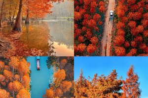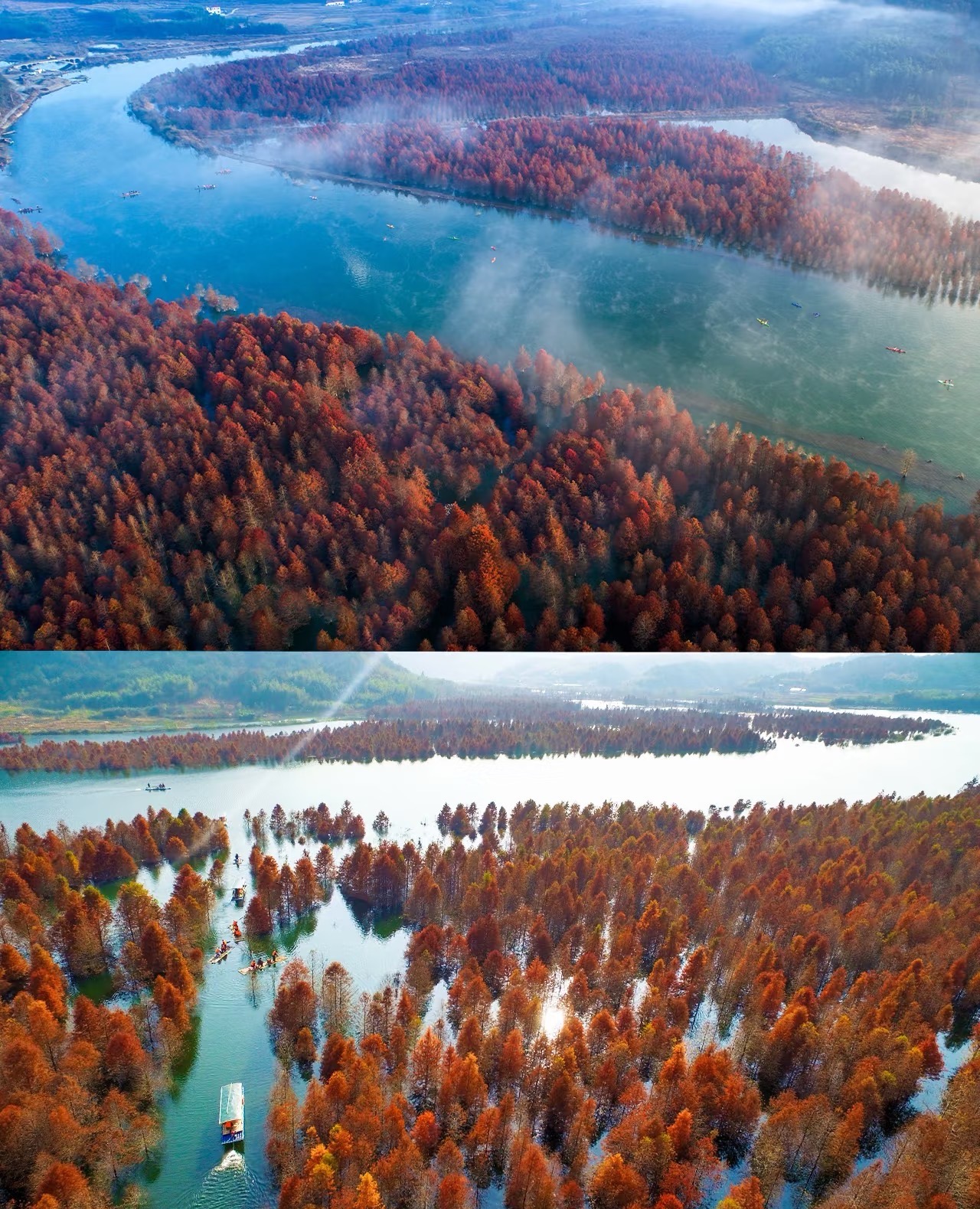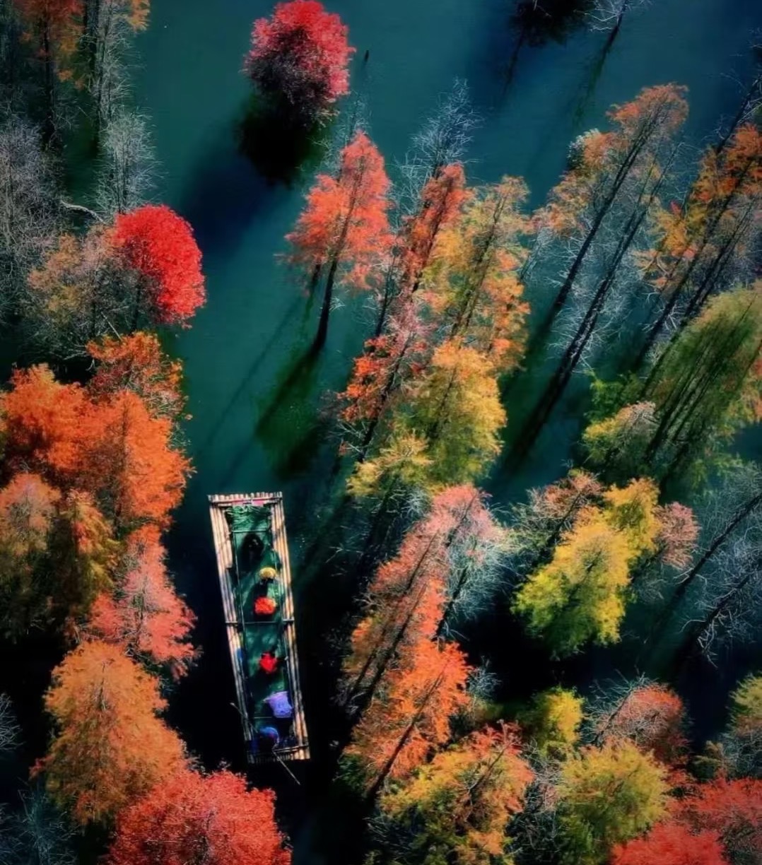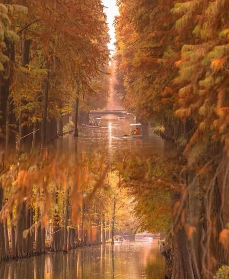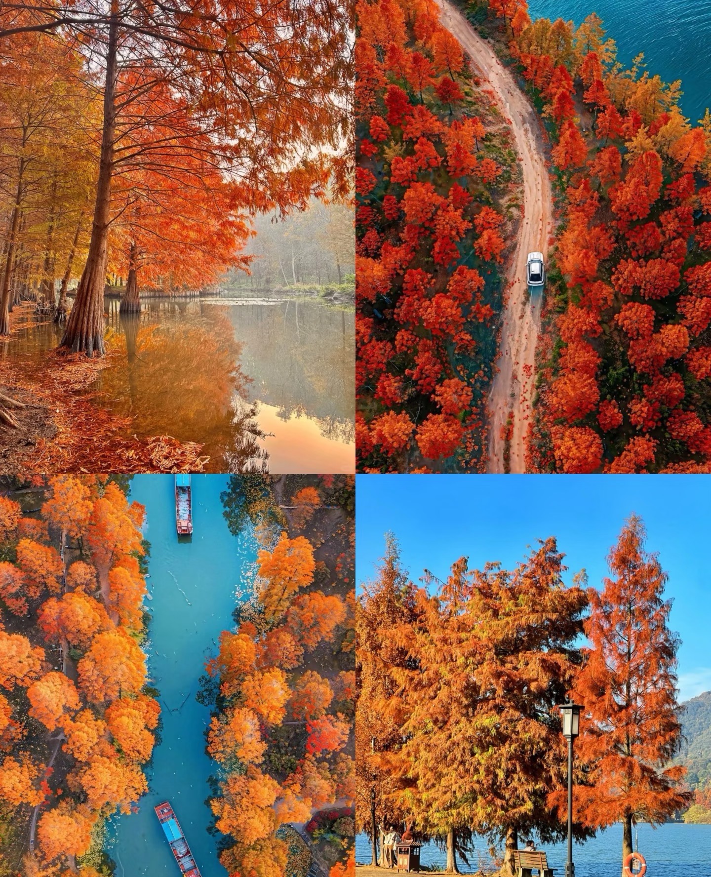 ◦ 自由拍摄水上红杉林(2000余亩水杉+碧水倒影,秋日色彩超出片);