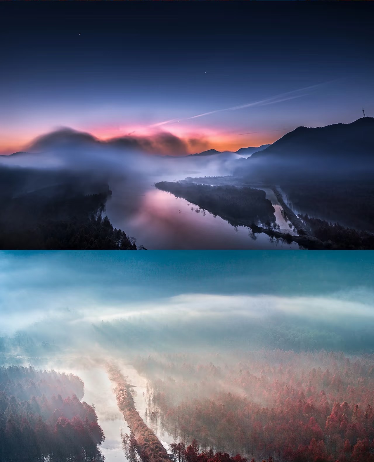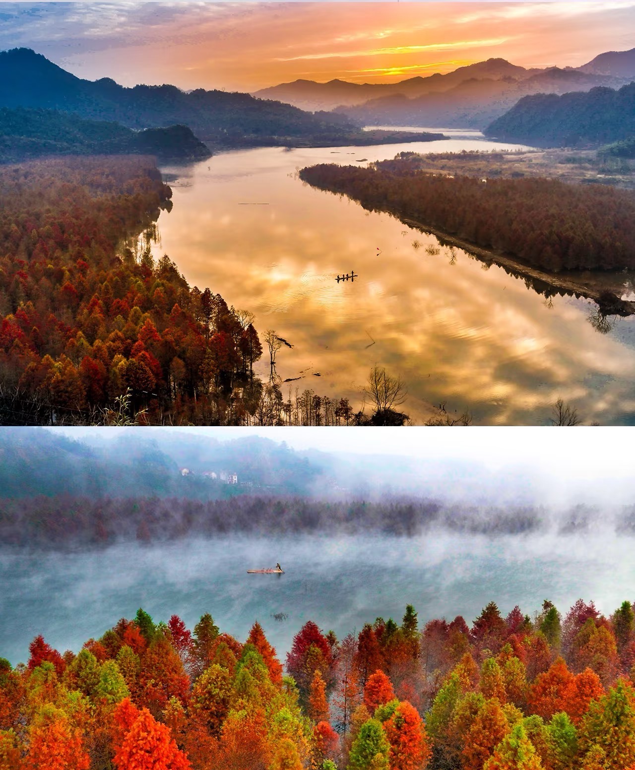 • 07:00 早起集合,前往青龙湾拍晨雾水杉林(深秋晨雾缭绕,红杉+薄雾+碧水,摄影出片黄金时段)。