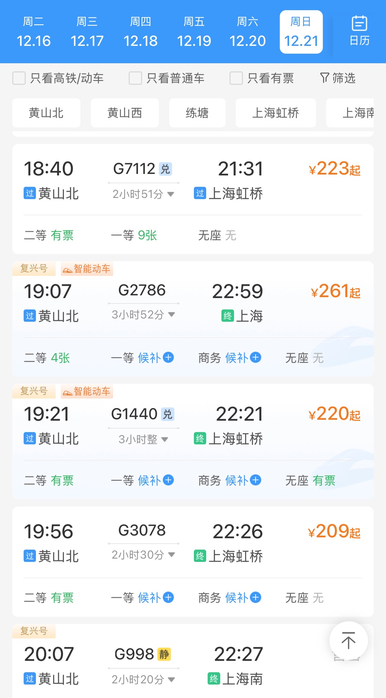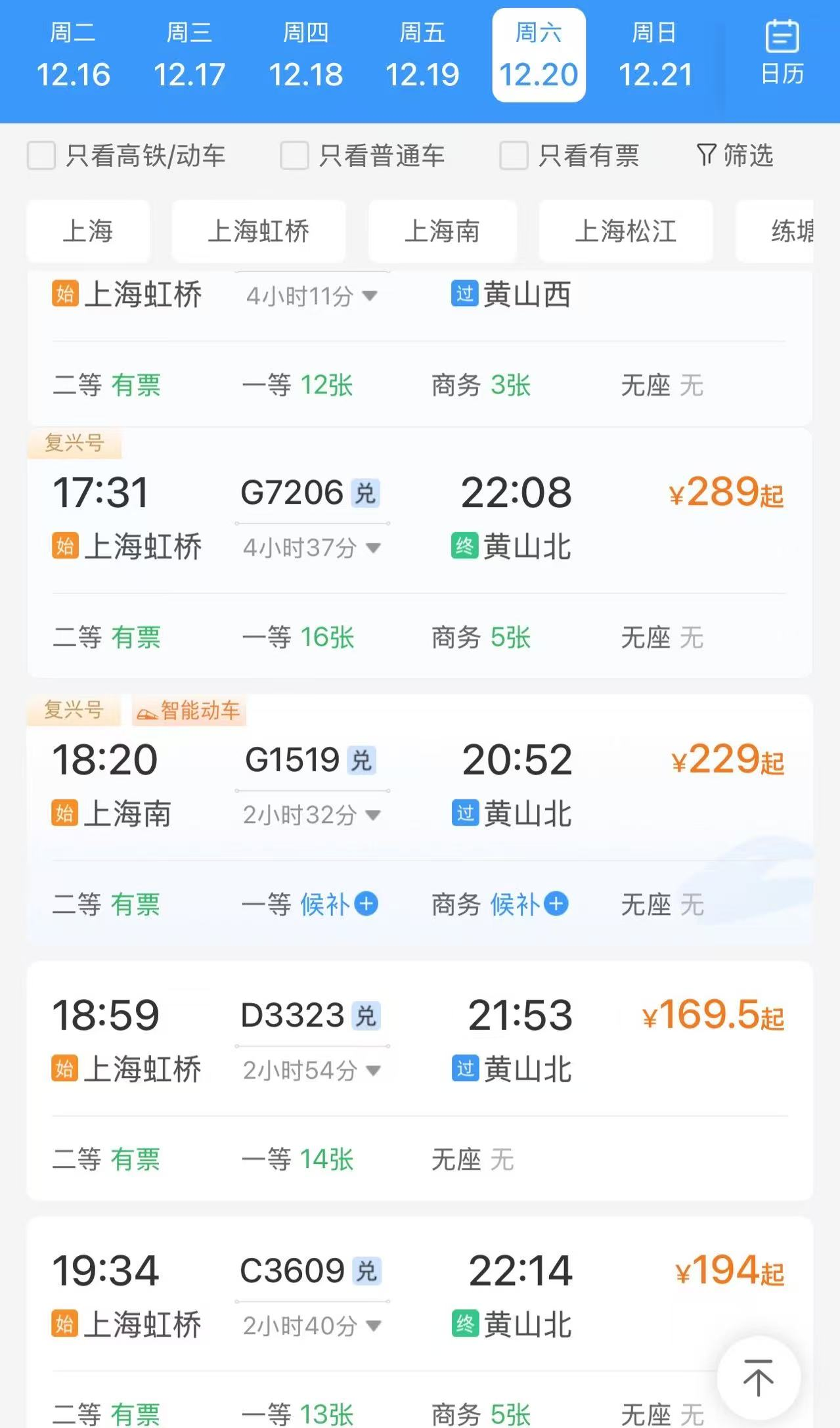 D1周五下午(12.26)自行购买高铁前往黄山北站,如需客服代购请提前联系小兔子