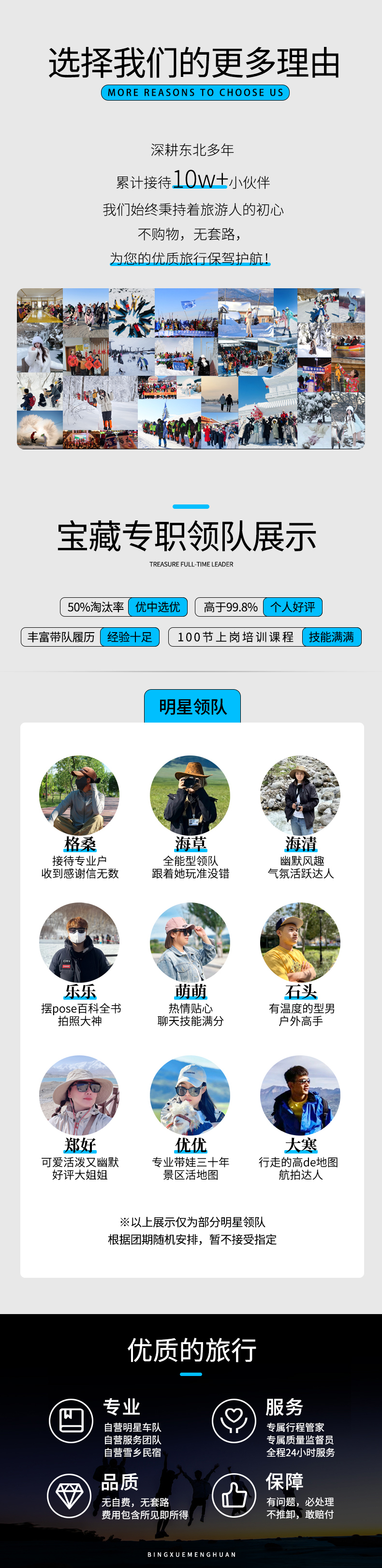 14、为了记录您在旅途中的美好瞬间,服务人员可能会为您以及同行人员拍摄一些照片,这些照片可能会被选中用于本产品活动分享、产品宣传、新媒体运营等,若您不同意授权我司使用的,请您在报名时备注。