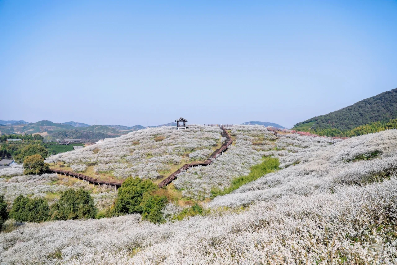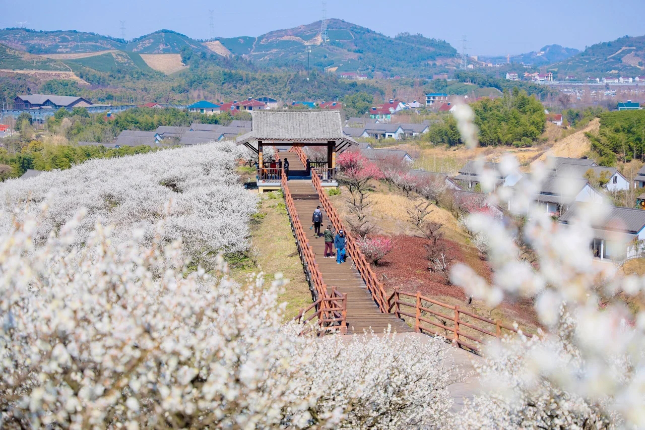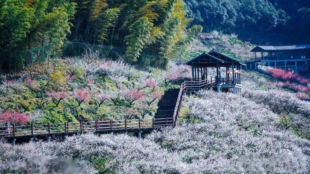 4.8公里原枕木栈道(可观1000亩梅海),12个观梅亭 2月11日-2月28日(醉梅期)观美最佳时间点 3月1日-3月10日(探梅期)