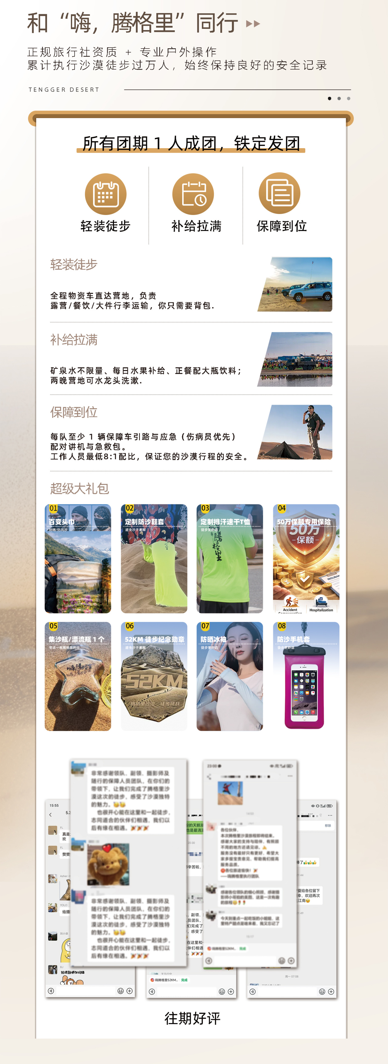 2、活动保险: 50万保额沙漠徒步专用定制保险。