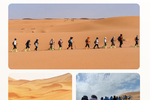 随后正式开启腾格里沙漠徒步行程。今日下午预计行走时间约5–6小时,今日预计徒步15公里左右,全程按照稳定节奏推进,途中根据队伍情况安排休息与补给点。