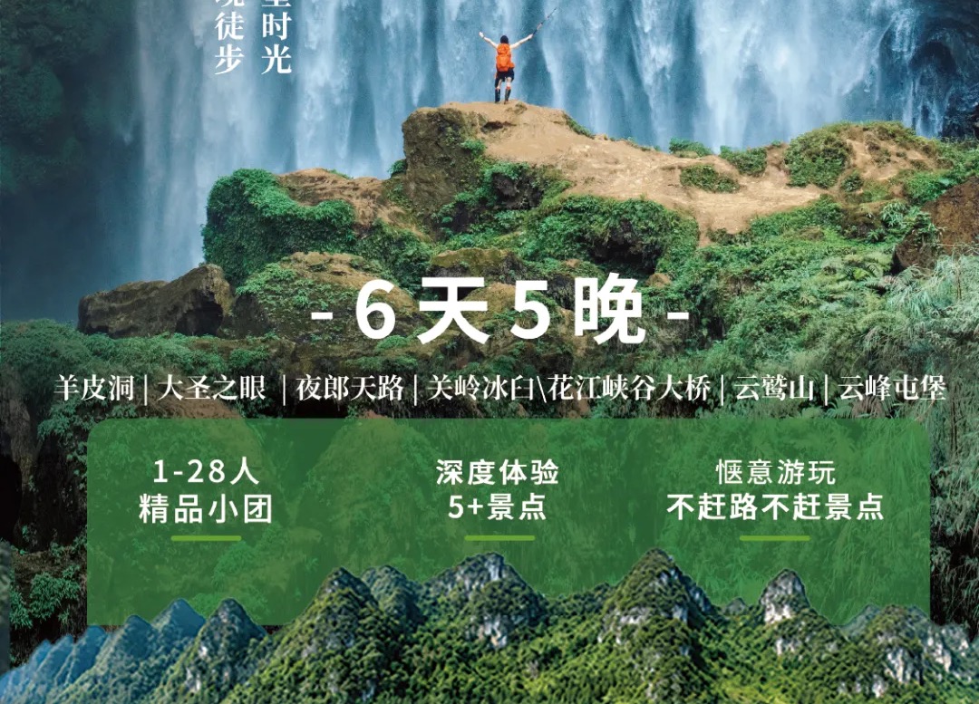 【多团期,报名立减200】贵州羊皮洞瀑布+大圣之眼+夜郎天路+关岭冰臼/花江峡谷大桥+云峰屯堡徒步6日