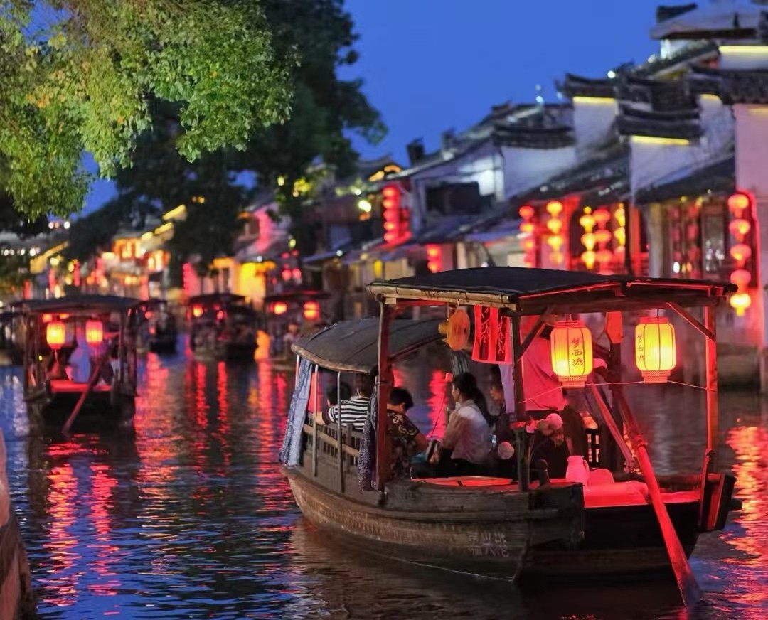 17:00左右,抵达西塘古镇,周杰伦的《天涯过客》MV就在此取景,让我们一同欣赏西塘白夜交替的美轮美奂。大家自由闲逛,乘坐游船、搜寻嘉兴地道美味~