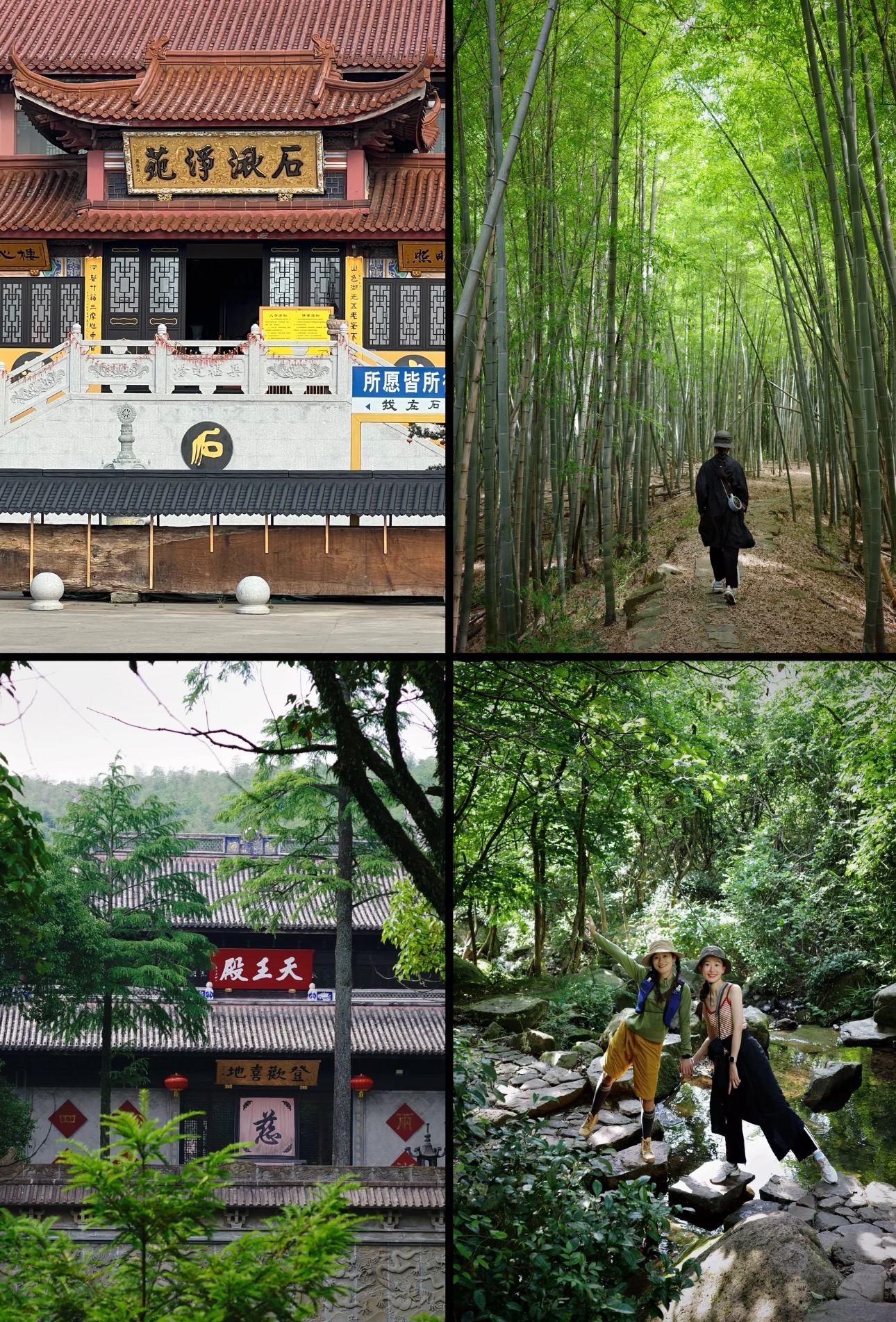 沿溪而行,竹林蔽日,溪水潺潺,满眼都是治愈的绿意。一路向上,终点就是藏在深山里的五磊讲寺——浙东第一古刹,三国时期就已存在的千年古寺,飞檐翘角隐在古树间,禅意拉满。登顶还能俯瞰里杜湖的湖光山色,视野绝了!